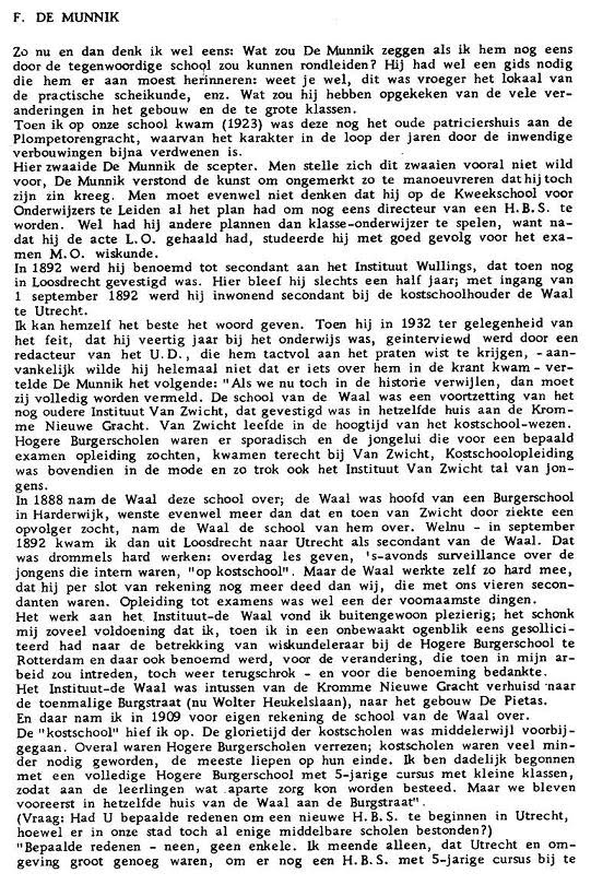 BIJZ. HBS F. DE MUNNIK in UTRECHT 1912 - 1968